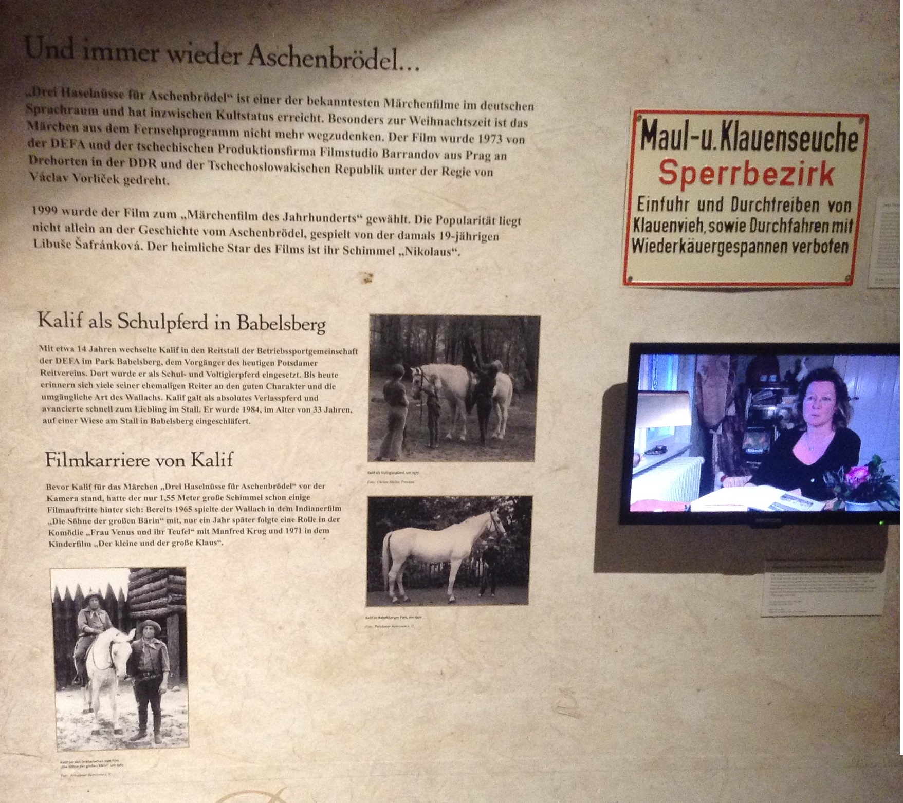 den Kalif, den man aus anderen Filmen bereits kannte. Frau Unterberg sagt, das der Sohn ihrer ehemaligen Kollegin Christa Müller über das Pferd recherchierte und auf seine Webseite darüber berichtet. |